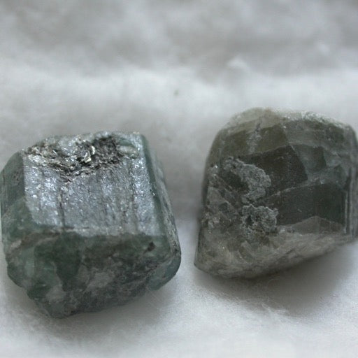 These beautiful Emerald Crystals come from Brazil. They are infused with a silvery inclusion that may be a type of Mica. My supplier calls them White Emeralds - but not because of the colour. They are definitely green as you'd expect them to be. There is a brightness and lightness to these crystals that helps me to understand why he calls them that. Some of the crystals actually do look white at certain moments in certain lights. It's quite magical.